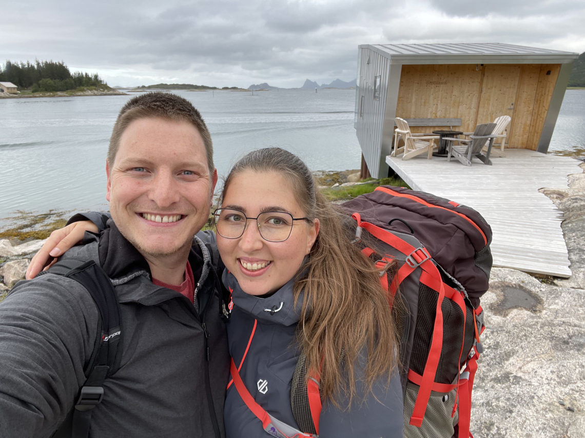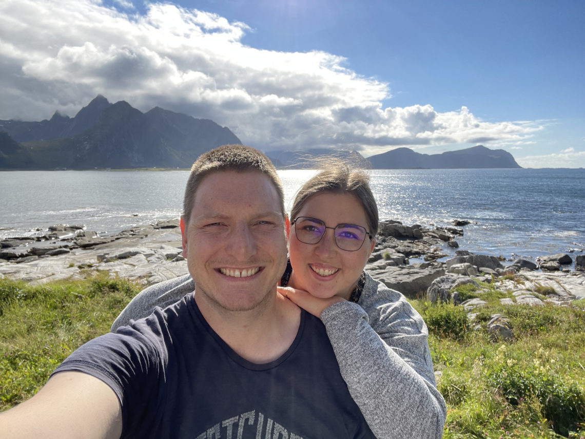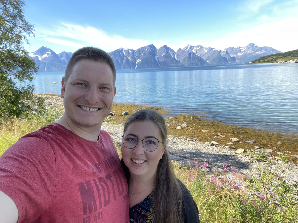 Mit einem wunderschönen Ausblick wachen wir auf und gehen zum Frühstück, wo uns ein wirklich leckeres Buffet erwartet. Von den norwegischen Spezialitäten, der gemütlichen Feuerstelle in der Mitte des Raumes bis hin zur Möglichkeit, selbst Waffeln zu machen, sind wir schwer begeistert. Gegen halb 11 verlassen wir gestärkt das Hotel und machen uns auf den Weg Richtung Lofoten. Die kurvenreichen, aber sehr gut ausgebauten Straßen führen uns bergauf und bergab, wobei wir die Aussicht mehr als genießen. Wunderschöne Fjorde, Seen und Wasserfälle kann man entlang des gesamten Weges bewundern. Auch unsere Pausen genießen wir bei Traumwetter draußen oder vom Wohnmobil aus mit bestem Ausblick. Besonders angetan haben es uns heute…