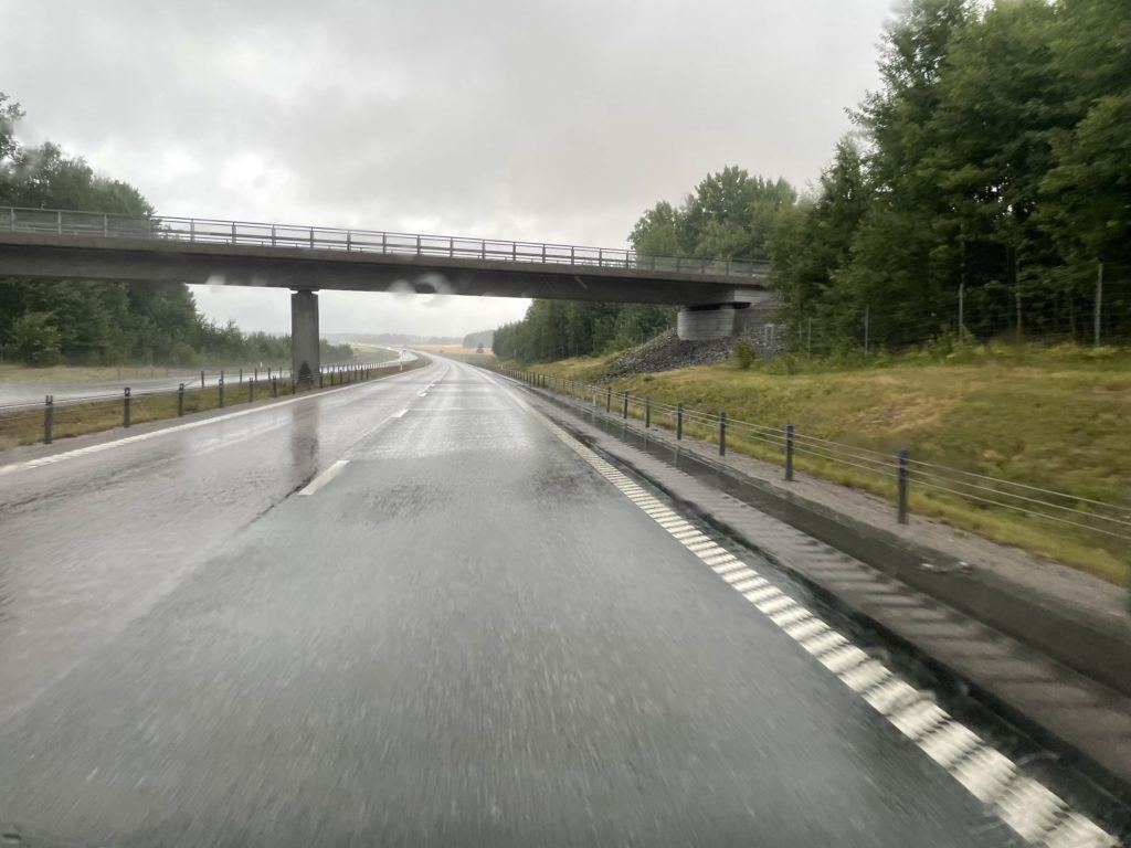 Bereits gegen 7:30 Uhr fahren wir weiter und verlassen Uppsala. Unser erstes Ziel ist Sundsvall, eine Stadt mit knapp 60 000 Einwohnern direkt am Bottnischen Meerbusen. Trotz des Regens sehen wir neben der Straße viele Seen, schöne Landschaften und scheinbar unberührte Natur.