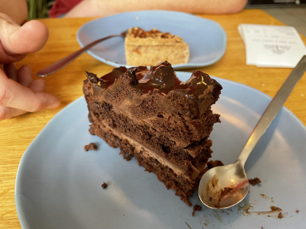 Am Nachmittag stärken wir uns mit Kaffee und der laut Magda besten Chocolate-Fudge-Torte der Welt bevor wir weiter Richtung Norden fahren.