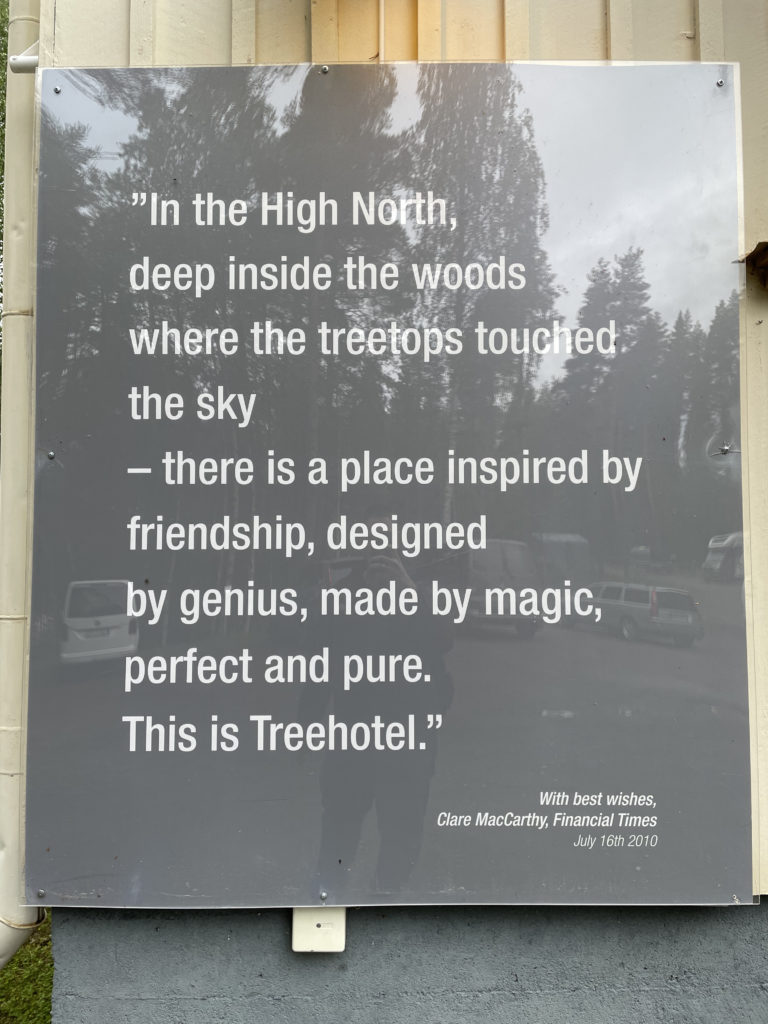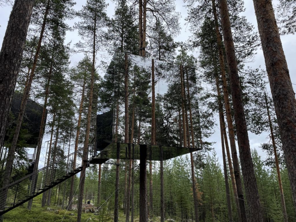 Am späten Vormittag fahren wir weiter und verlassen in Luleå die E4, unsere bisher wichtigste Hauptstraße in Schweden. Von da an wird es noch ruhiger auf den Straßen. Am Nachmittag erreichen wir nach 362 Kilometern unser erstes Hotel: das Treehotel in Harads. Dort machen wir es uns in unserem Mirrorcube gemütlich und genießen die einzigartige Aussicht.