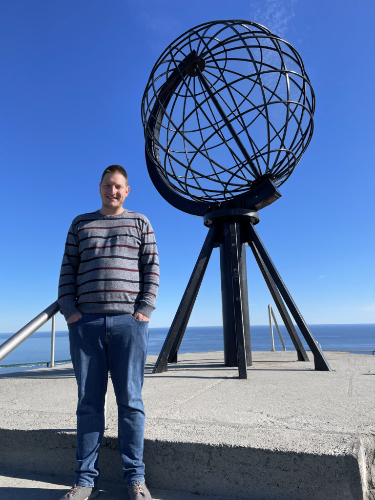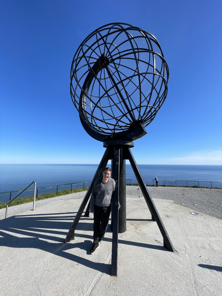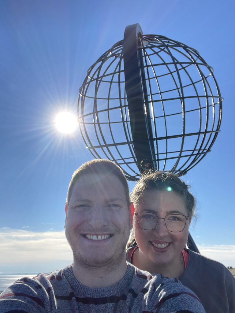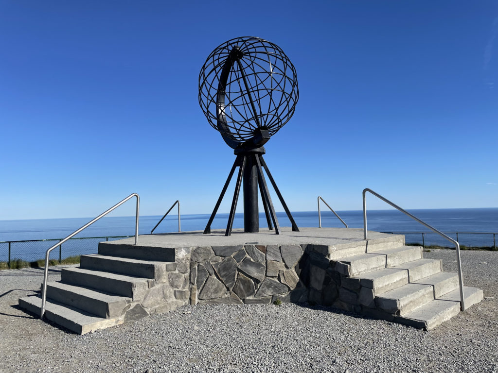 Nach einer hellen Nacht machen wir uns gegen halb 9 abfahrbereit. Davor gehen wir aber noch einmal zum Symbol des Nordkaps, der Weltkugel. Dieses Mal sind fast keine Menschen dort und wir können noch schöne Erinnerungsfotos machen.