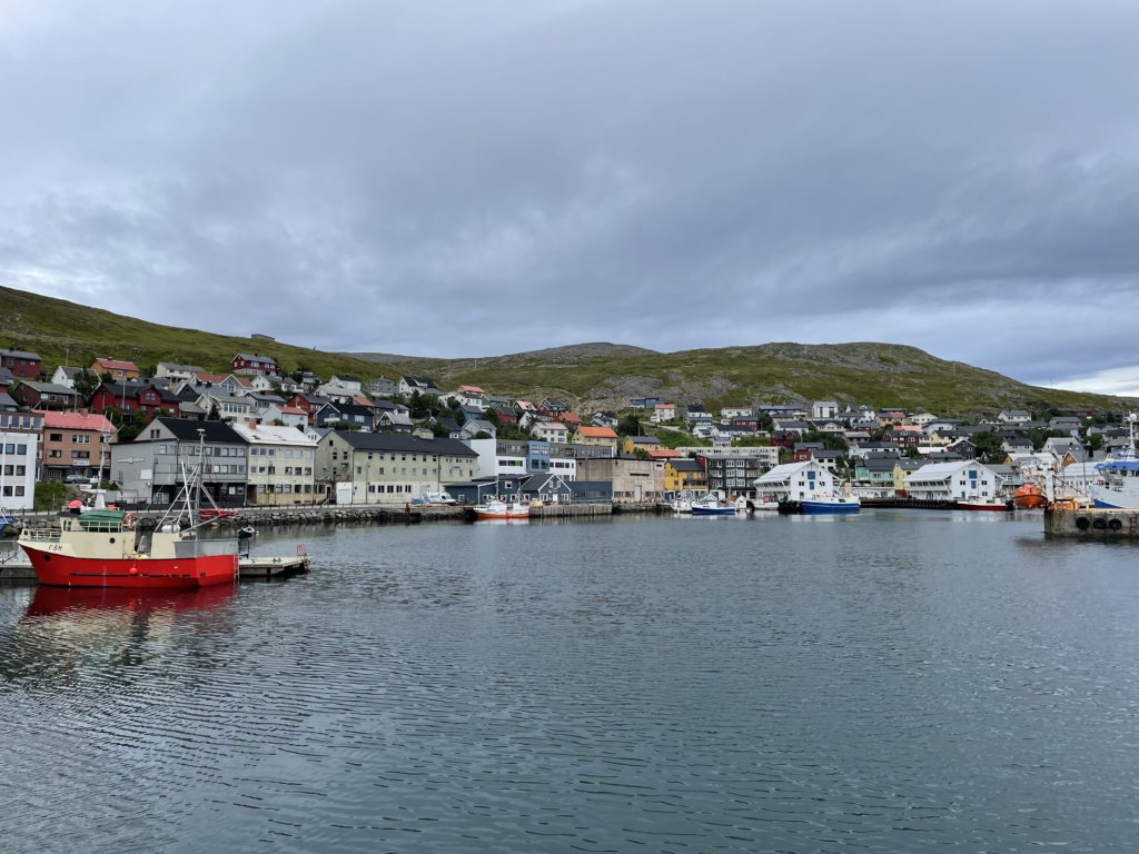 Mit vollem Bauch gehen wir wieder ins Hotelzimmer und genießen den Blick direkt auf den Hafen von Honningsvåg.
