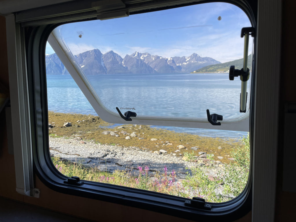 Auch unsere Pausen genießen wir bei Traumwetter draußen oder vom Wohnmobil aus mit bestem Ausblick.