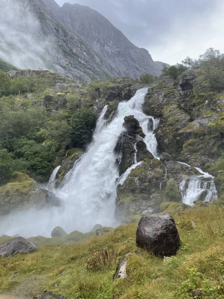 Mit dem Wissen um die in der Früh vor unseren Augen einlaufende Iona, ein Kreuzfahrtschiff mit über 6000 Passagieren an Bord, stehen wir zeitig auf und fahren um kurz vor halb 9 zum Briksdalsbreen.