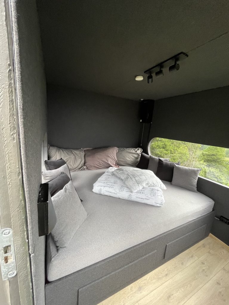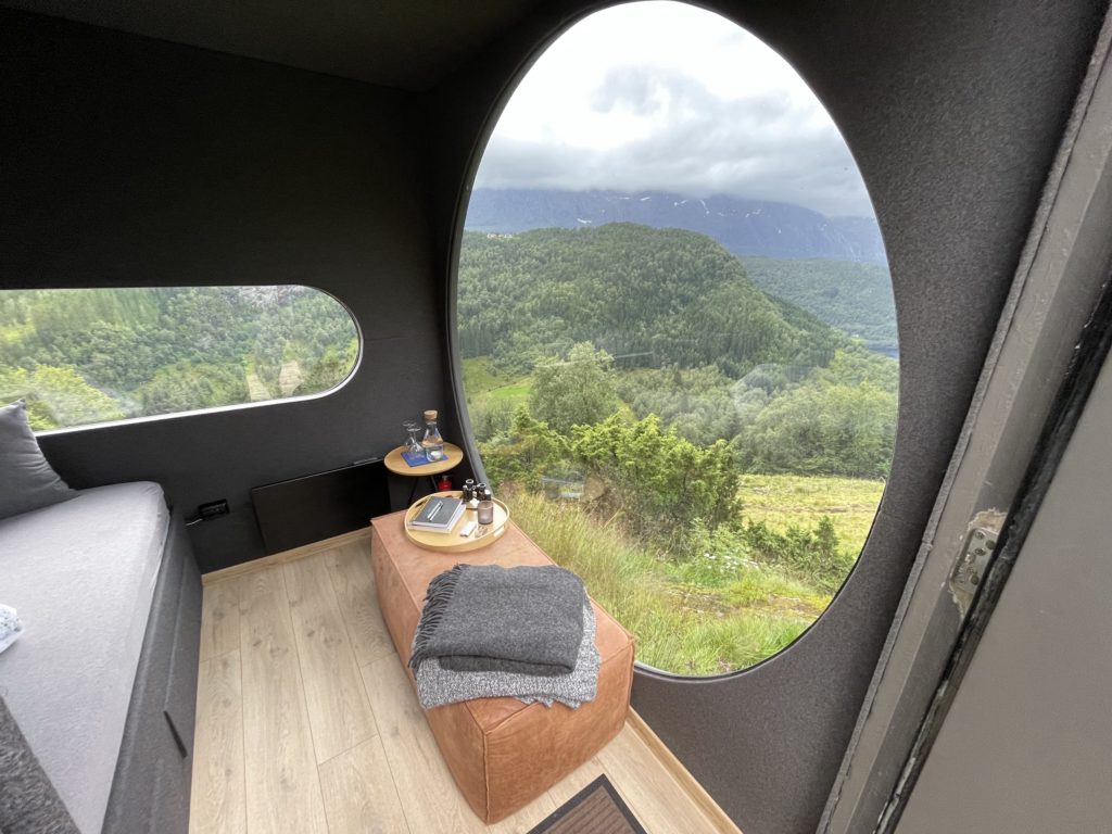 Abgelegen am Waldrand und mit unglaublich tollem Blick auf den Førdefjord beziehen wir nach 161 gefahrenen Kilometern die 3,2 x 2,2 x 2,2 Meter „große“ Birdbox und verbringen hier einen entspannten Abend in wunderschöner Umgebung.