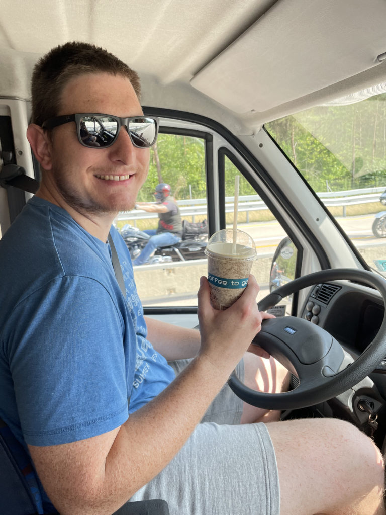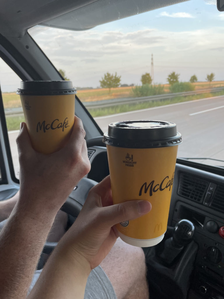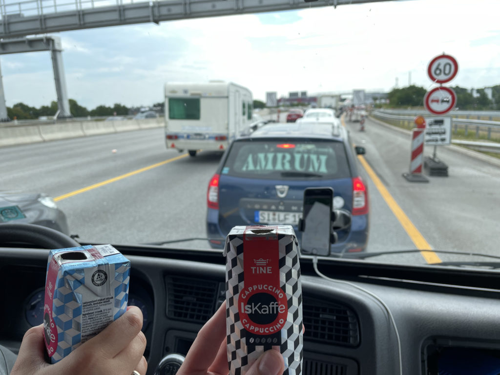 Mit dem Ziel heute ein großes Stück der Strecke durch Deutschland zu schaffen und mit dem Wissen, dass es ein reiner Reisetag wird, brechen wir mit Podcasts und Büchern eingedeckt auf. Wir fahren ohne große Hindernisse bis Hamburg, wo uns leider ein Stau erwartet. Das kostet uns etwas Zeit und in der Hitze kühlt uns nur kalter Kaffee.